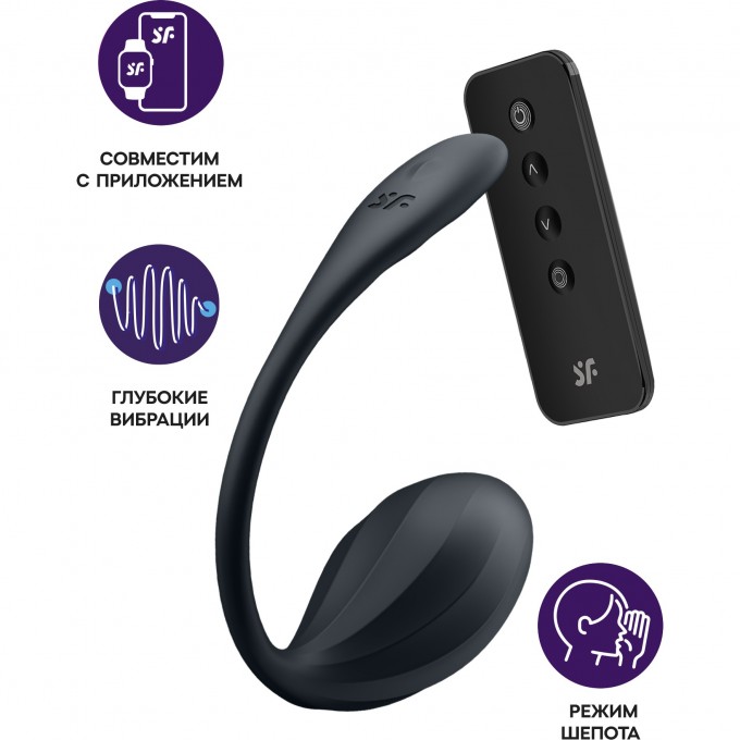 Виброяйцо SATISFYER RIBBED PETAL с пультом ДУ, черное, 7,8 см 4002767